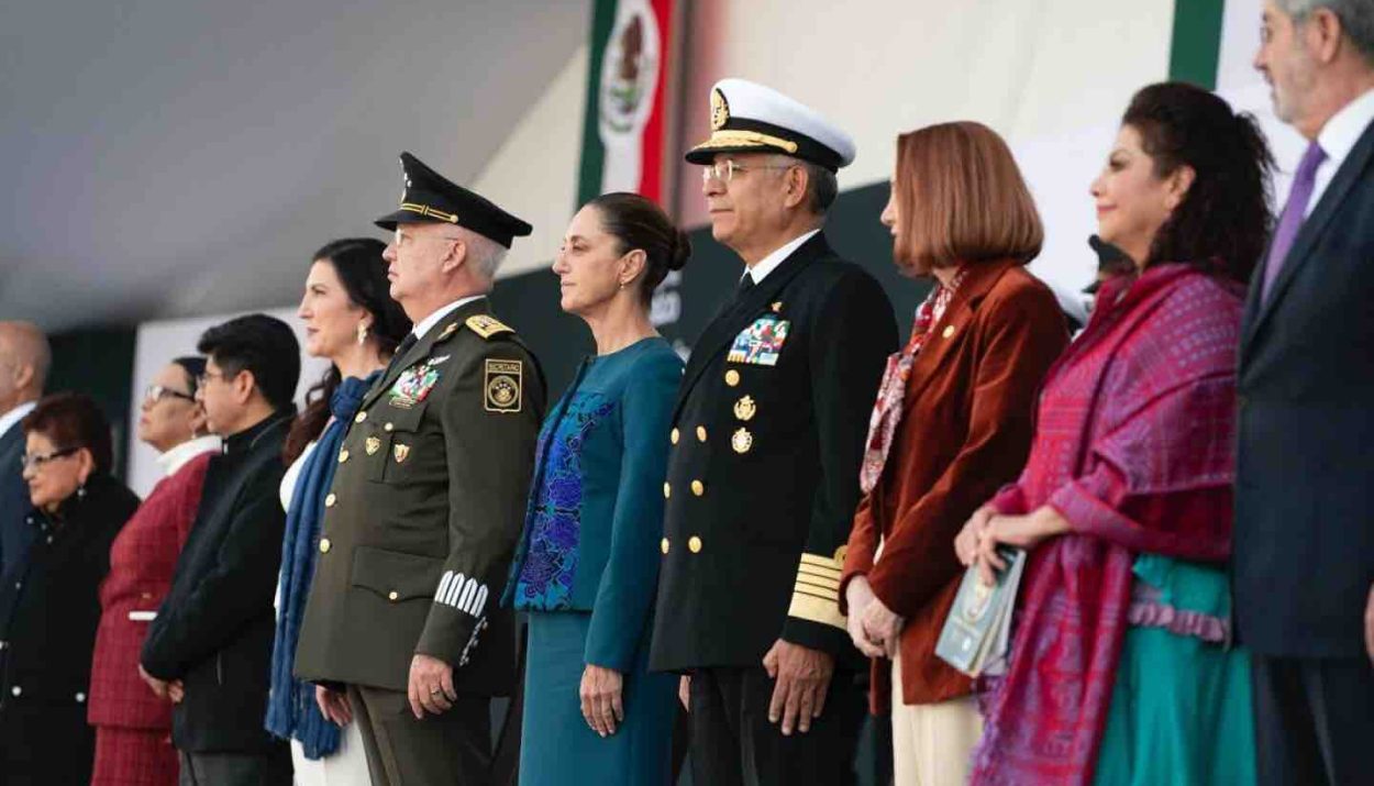 Junto a la mandataria estuvieron presentes el titular de la Sedena, Ricardo Trevilla Trejo; el secretario de Marina, Raymundo Pedro Morales Ángeles; la presidenta de la Cámara de Diputados, Kenia López Rabadán; y la presidenta del Senado, Laura Itzel Castillo Juárez.